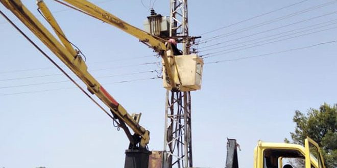 شركة كهرباء الحسكة تنجز صيانة الأعطال التي طرأت نتيجة الرياح القوية