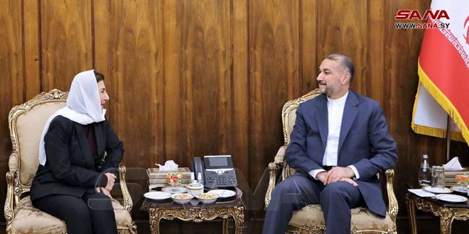 بحثت الدكتورة بثينة شعبان المستشارة الخاصّة في رئاسة الجمهورية مع الدكتور حسين أمير عبد اللهيان وزير الخارجية الإيراني التنسيق المشترك بين البلدين بما يخدم علاقاتهما الاستراتيجية، والوضع الإقليمي والدولي.