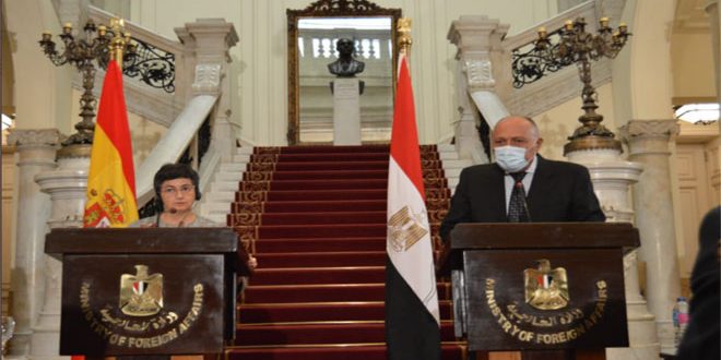 ونقلت وسائل إعلام مصرية عن شكري قوله في مؤتمر صحفي مشترك مع نظيرته الإسبانية أرانشا غونزاليس لايا في القاهرة اليوم “الوضع متأزم في ليبيا وهناك حالة عدم استقرار بسبب تدخل بعض الدول في شؤونها الداخلية” لافتاً إلى أن “هناك انتشاراً للتنظيمات الإرهابية التي تحاول اختراق الحدود المصرية الليبية وهو ما جعل من الأهمية التعامل مع الأزمة والتوصل لاتفاق ليبي ليبي”.