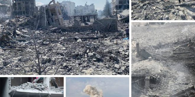 وفي مدينة غزة استشهد فلسطيني جراء قصف طيران الاحتلال المُسير قرب ملعب فلسطين وسط المدينة ومنازل عدة في حي الزيتون جنوب شرقها.