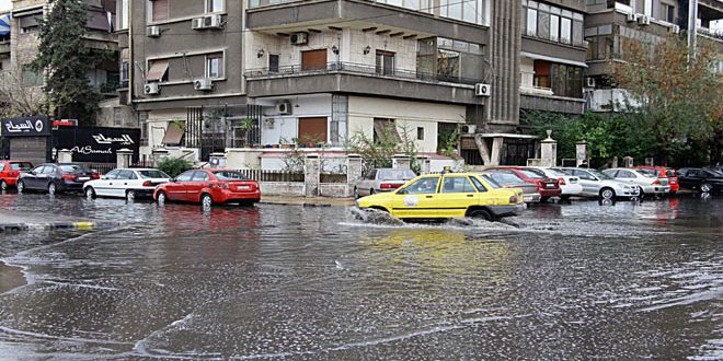 شوارع دمشق بعد الأمطار الغزيرة التي هطلت أمس الخميس