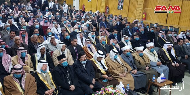 ولفت الشيخ النجرس إلى أن أبناء عشائر الثلث “يقفون مع أبناء العشائر العربية خلف الجيش العربي السوري لتحرير الجزيرة من المستعمر الغاشم وأذنابه وعودتها لحضن سورية الوطن”.