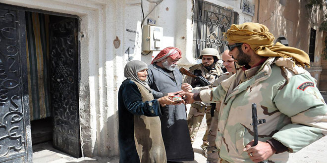وكانت القيادة العامة للجيش والقوات المسلحة أعلنت أمس إعادة الأمن والاستقرار إلى مدينة تدمر مؤكدة في بيان لها أن هذا دليل جديد على أن الجيش العربي السوري هو القوة الوحيدة الفاعلة والقادرة على مكافحة الإرهاب واجتثاثه.