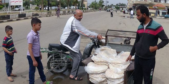 و يوضح صخر لمراسلة سانا أن الجهات الحكومية قدمت له رخصة الخبز أما المساعدات التي يحصل عليها فهي حصة غذائية كل شهرين حاله حال بقية الأسر المحتاجة في درعا.
