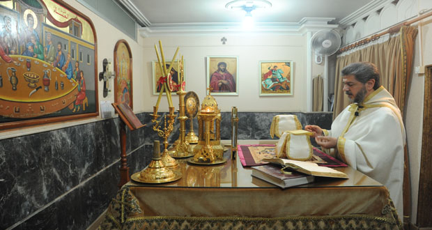 صلاة لأجل السلام في سورية في كنيسة القديس انطونيوس الكبير للروم الأرثوذكس