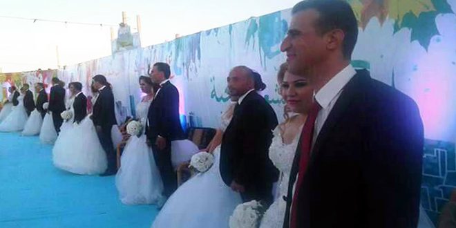 فبعد نجاحها العام الماضي عادت المبادرة لتحتفل هذا العام بإتمام فرح وزواج عشرين شابا وشابة من مختلف مناطق المحافظة ثلاثة منهم من أبطال الجيش العربي السوري وقوى الأمن الداخلي ضمن عرس جماعى أقيم مساء السبت الماضي في مدرسة الأمل لتعليم القيادة في صلخد جرى تأمين تكاليفه بدعم من المجتمع الأهلي والمغتربين والفعاليات الاقتصادية في المحافظة.