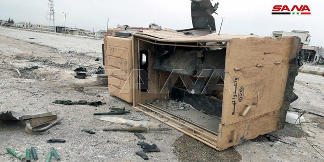 وبين قائد ميداني لمراسل سانا أنه وبعد أن حررت وحدات الجيش مدينة سراقب قامت وحدات الهندسة بتفكيك الألغام والعبوات الناسفة التي زرعها الإرهابيون على الطريق.