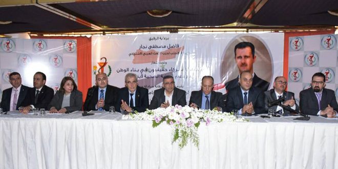 رئيس فرع نقابة الصيادلة في حلب الدكتور عبد الله جراح استعرض مجمل التقارير المقدمة لاجتماع الهيئة العامة مشيرا إلى أن الصيادلة كانوا سباقين في العودة إلى صيدلياتهم في الأحياء المطهرة وترميمها وإعادة فتحها من جديد لتقديم الخدمات والأدوية اللازمة للأهالي.