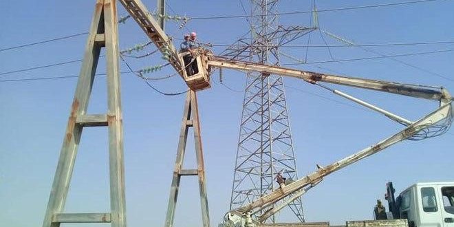 صيانة خطوط التوتر المغذية لعدد من أحياء القامشلي
