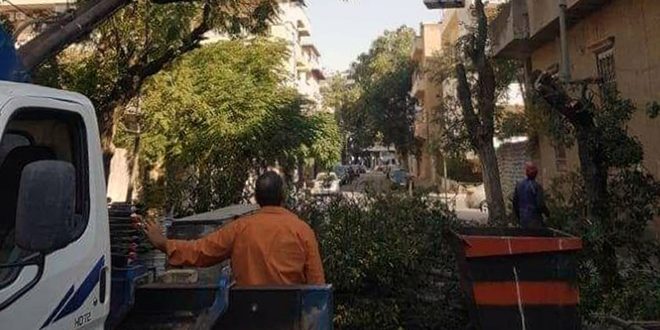 وأوضح المهندس وليد عطية مدير الحدائق بالمجلس في تصريح لمراسلة سانا أن الورشات حاليا تعمل على تقليم أشجار حديقة أبو تمام في حي البغطاسيه وترحيل النواتج ومتابعة أعمال تسوية الأنقاض وتسوية منصف طريق دمشق إضافة إلى إزالة الأعشاب وتقليم الأشجار والشجيرات وعزق الأحواض في حديقة الشواف والكلية الحربية وشارع القضاة والقصر العدلي ومفرق مصياف وحديقة تشيلي في حي الوعر.