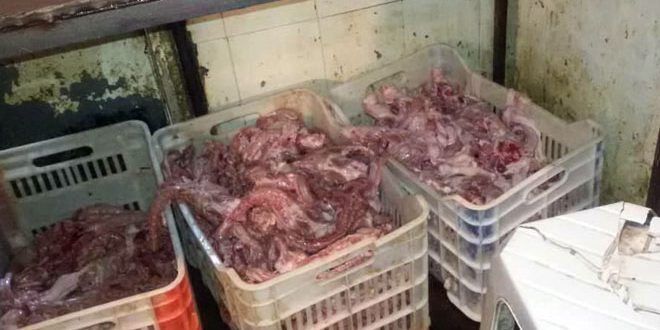 ضبطت مديرية الشؤون الصحية في محافظة دمشق أكثر من 200 كيلوغرام من الدجاج الفاسد داخل محل في سوق اللحوم بالزبلطاني.