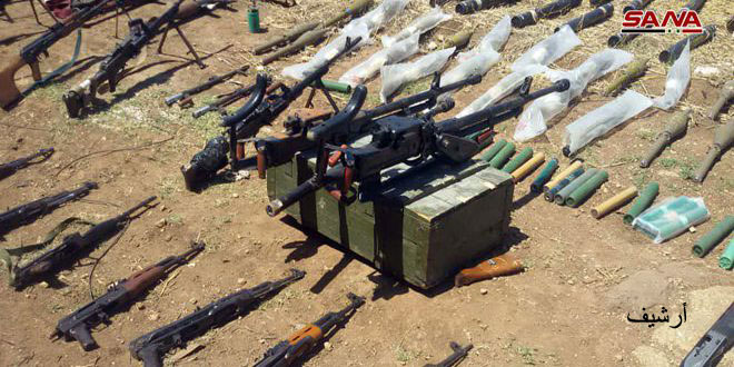 ضبط ذخائر وأسلحة بعضها غربي الصنع من مخلفات الإرهابيين في عقرب بريف حماة