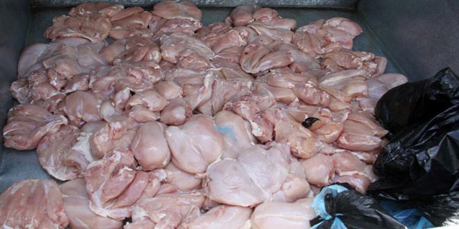 ضبطت مديرية التجارة الداخلية وحماية المستهلك في حي البرانية بطرطوس سيارتين محملتين بكمية تقارب 300 كغ من مادة الفروج الفاسد غير صالح للاستهلاك اضافة الى عدم حيازة شهادة صحية وفواتير نظامية.