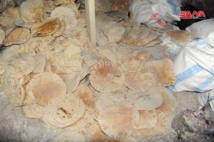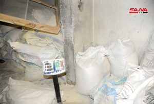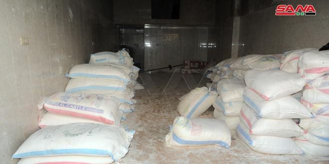 ضبط عناصر مديرية التجارة الداخلية وحماية المستهلك بريف دمشق بالتعاون مع قسم شرطة عين ترما مستودعين يحتويان على نحو 8 أطنان من طحين دقيق تمويني مهرب من أحد المخابز التموينية.