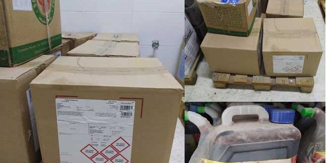 ضبطت عناصر مديرية التجارة الداخلية وحماية المستهلك بريف دمشق نحو نصف طن مواد منتهية الصلاحية ودون مواصفات في معمل ومستودع في سبينة.