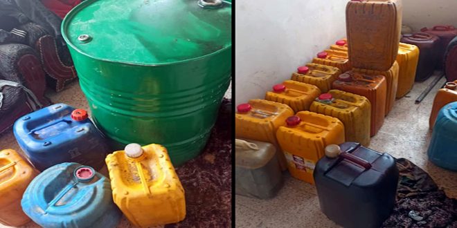 ضبط عناصر مديرية التجارة الداخلية وحماية المستهلك بريف دمشق بائع محروقات في بلدة الحسينية بحوزته 360 ليتر مازوت و160 ليتر بنزين يقوم بالاتجار غير المشروع بها في السوق السوداء وبيعها بأسعار مرتفعة مستفيداً من فارق السعر وحاجة المواطنين للمادة.