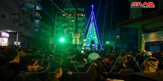 ضمن أجواء أعياد الميلاد ورأس السنة أضيئت اليوم شجرة ميلاد بساحة الملجأ بحي الحميدية ضمن حفل ميلادي حضره حشد من أهالي الحي والأحياء المجاورة.