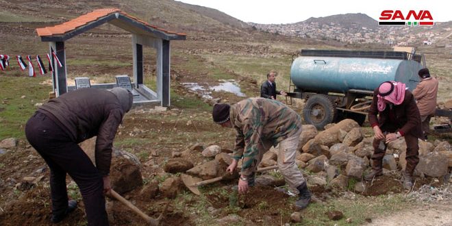 وفي السويداء تم وضع حجر الأساس لمشروع مدافن قرية مفعلة مع غرس عدد من الأشجار على مدخلها بمشاركة فعاليات أهلية ورسمية.