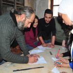 وتضم الورشة ثلاثين طالباً وطالبة من قسمي الخزف والخط العربي في المعهد إضافة إلى عدد من الفنانين الخريجين وطلاب كلية الفنون الجميلة المهتمين بهذا الفن التراثي المميز.