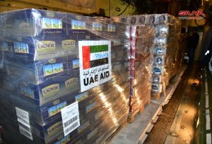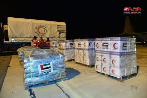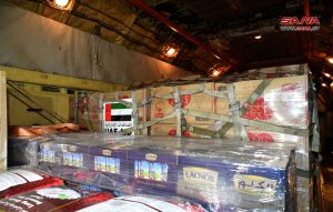 وصلت طائرتان إماراتيتان مساء أمس إلى مطار دمشق الدولي محملتان بمواد إغاثية ومعيشية للأهالي المتضررين من الزلزال.