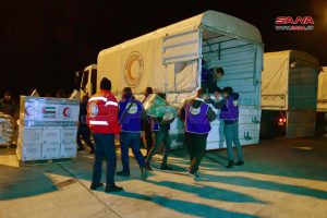 وحطت في مطار دمشق الدولي حتى الآن 4 طائرات إماراتية من المساعدات الإنسانية، حيث وصلت أمس طائرة بحمولة 86 طناً وأخرى بحمولة 25 طناً.