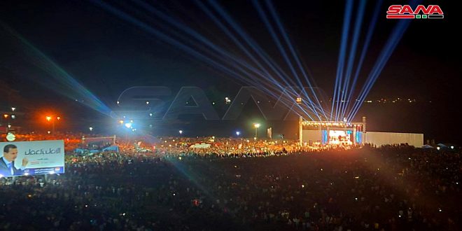 ففي صورة أبلغ من الكلام شهدت ساحة المهرجانات وامتداد الكورنيش البحري ومناطق أخرى حشودا كبيرة من أبناء المحافظة احتفالاً بنصر سورية وفوز الدكتور بشار الأسد.