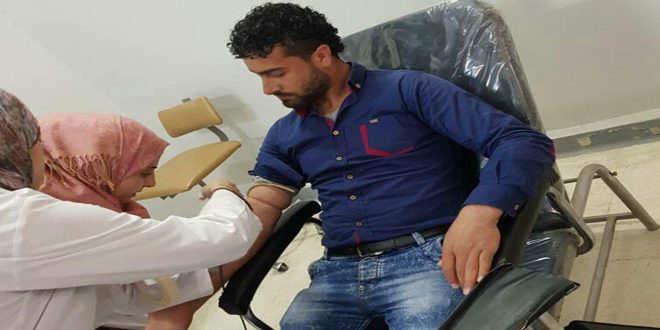 تقديرا لتضحيات جرحى الجيش العربي السوري في مواجهة الإرهاب نظم فرع القنيطرة في الاتحاد الوطني لطلبة سورية اليوم حملة تبرع بالدم في وحدة قطف الدم بمشفى الشهيد ممدوح أباظة.