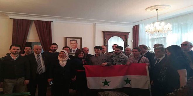 جدد الطلبة السوريون الدارسون في بيلاروس وقبرص وماليزيا وصربيا تضامنهم مع وطنهم سورية شعبا وجيشا وقيادة في حربها ضد الإرهاب وداعميه معربين عن فخرهم واعتزازهم بالانتصارات الكبيرة التي يحققها الجيش العربي السوري.