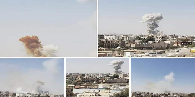 وذكر موقع المسيرة نت أن طيران العدوان شن 5 غارات على حي النهضة وغارتين على منطقة عطان ما أوقع أضرارا مادية جسيمة في ممتلكات المواطنين والبنى التحتية.