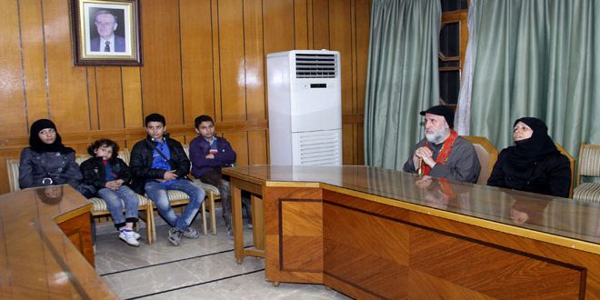 وقدم المحافظ كل ما يلزم للعائلة من مساعدات وغذاء ودواء مؤكداً الحرص التام على تقديم كل أشكال الرعاية والاهتمام للأسر الوافدة من الاحياء الشرقية.