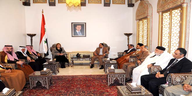 ولفت رئيس الوفد إلى أن ثبات سورية وانتصارها على الإرهاب يشكل سندا قويا لصمود ليبيا وانتصاراتها مبينا أن الهدف من الزيارة توطيد العلاقة بين البلدين والتأكيد على أن “القبائل في ليبيا تقف مع سورية وأننا شعب واحد في بلدين”.