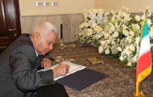 وقدمت رئيسة مجلس الشعب الدكتورة هدية عباس واجب العزاء للسفير الإيراني بدمشق جواد تركابادي حيث دونت كلمة في سجل التعازي.