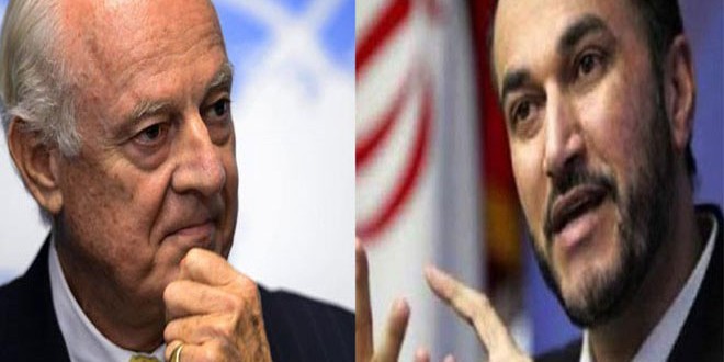 وشدد عبد اللهيان خلال إتصال هاتفي مع مبعوث الأمين العام للأمم المتحدة الخاص إلى سورية ستافان دي ميستورا قبيل اجتماع المجموعة الدولية لدعم سورية في ميونيخ يوم غد على أن “الصعوبات التي واجهتها محادثات جنيف الأخيرة حول سورية هي نتيجة عدم فصل الجماعات الإرهابية عن قائمة المعارضة”.