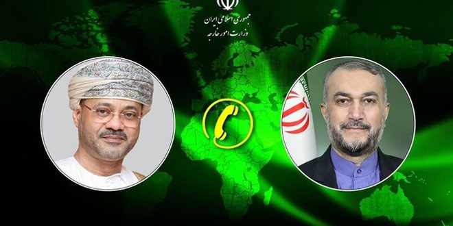 وذكرت الخارجية الإيرانية في بيان اليوم أن عبد اللهيان والبوسعيدي بحثا خلال اتصال هاتفي آخر التطورات في المنطقة وأدانا ممارسات الكيان الصهيوني المزعزعة للاستقرار في المنطقة وأكدا أن السبيل الوحيد لإعادة الأمن هو وقف جرائم الحرب التي يرتكبها في غزة.