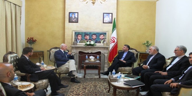 بحث مساعد وزير الخارجية الإيراني حسين أمير عبد اللهيان مع مبعوث الأمم المتحدة إلى سورية ستافان دي ميستورا التطورات في المنطقة وتحديدا سورية وذلك في السفارة الإيرانية ببيروت.