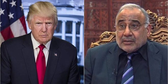 عبد المهدي لترامب: الأحداث المؤلمة التي حذرنا منها هي سبب الاحتجاجات أمام السفارة الأمريكية