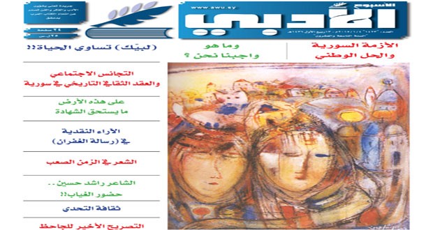 وقال الدكتور حسين جمعة رئيس اتحاد الكتاب العرب في افتتاحية العدد بعنوان “الأزمة السورية والحل الوطني”.. تنطلق رؤيتنا لحل الأزمة والحوار الوطني من اندماجها بالرؤى التي توصلت إليها المؤسسات والفعاليات الأخرى في إطار التكامل لا التباري والتعاون لا التناقض فكل ينطلق من موقعه ومسؤوليته للقيام بالمهمات المحددة التي تساعد على نجاح الحل وعودة الوطن السوري معافى وأفضل كما كان.