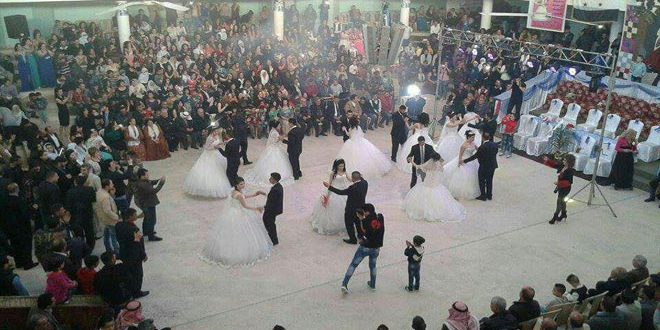 أقيم مساء اليوم في صالة السابع من نيسان بمدينة السويداء عرس جماعي لـ 20 شابا وشابة ضمن مبادرة كلنا سوا منرسم بسمة.