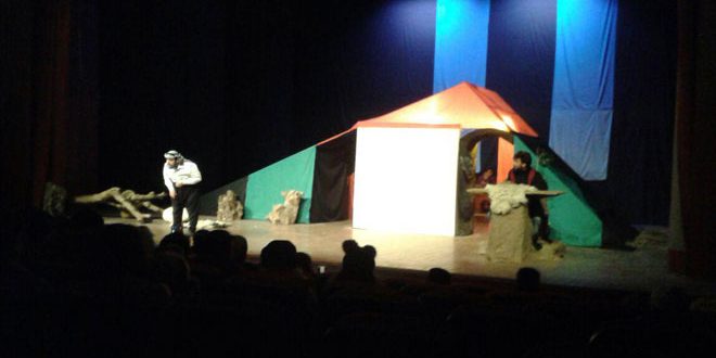 تستند مسرحية الإنسان التيس لفرقة حكايا التي تقدم ضمن مهرجان مسرح الطفل في المركز الثقافي العربي بمدينة السويداء إلى حكاية شعبية روسية عن محاذير طمع الإنسان وجشعه.