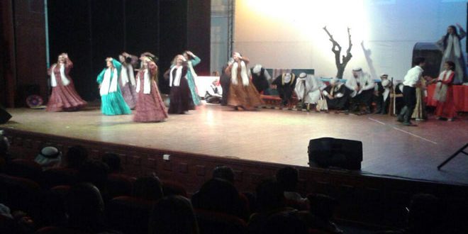وتضمنت فعاليات اليوم الختامي للمهرجان عرضا مسرحيا تراثيا قدمته فرقة “شهرزاد” بإشراف الفنان مازن الحكيم تم خلاله تقديم فقرات من التراث والفلكلور الشعبي لمحافظة السويداء جسدت عادات وتقاليد المحافظة إضافة إلى أغان وطنية.