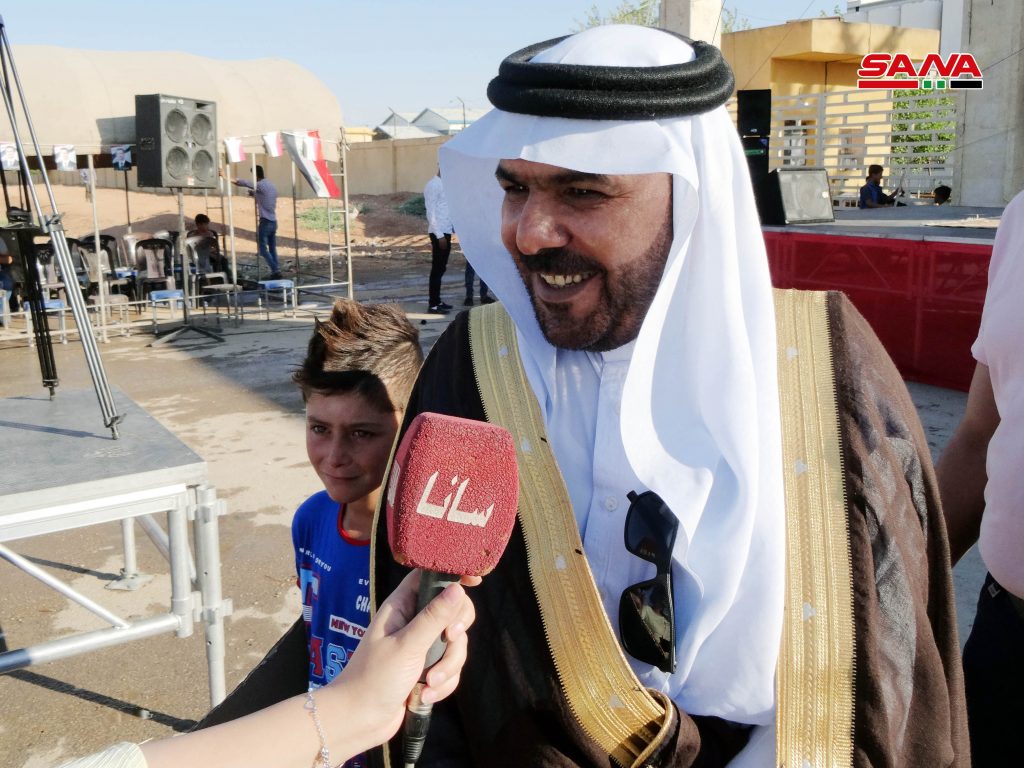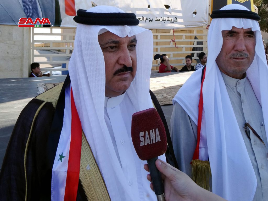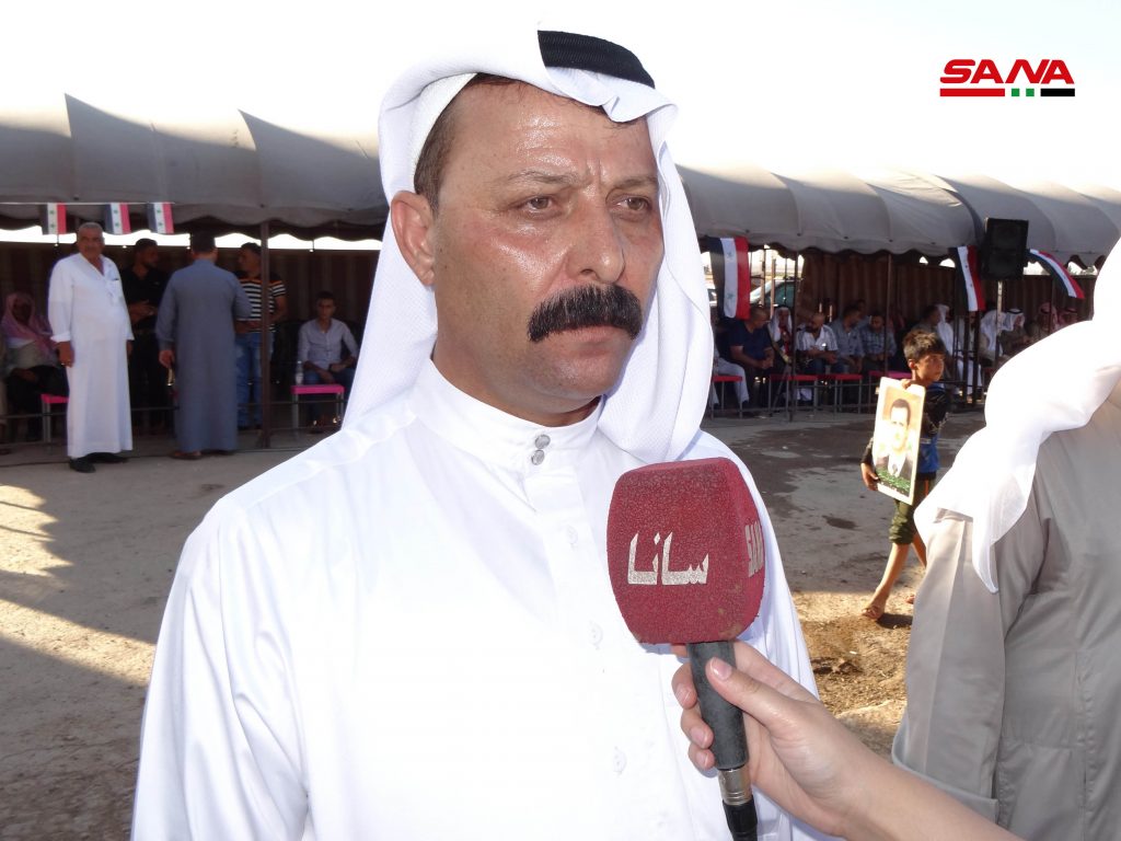 بدوره أكد الشيخ علي محمد الصطوف شيخ عشيرة الصعب ونائب رئيس المصالحة الوطنية في حلب أن النصر قادم في وجه كل العصابات الإجرامية والمتآمرة على سورية.