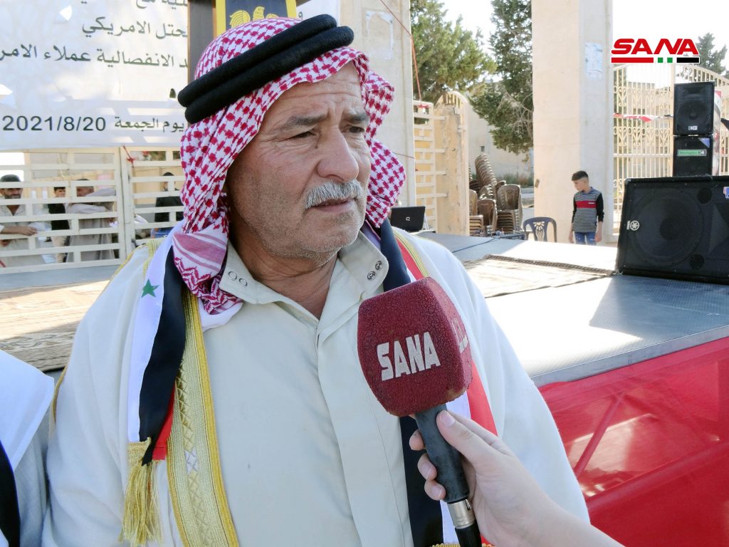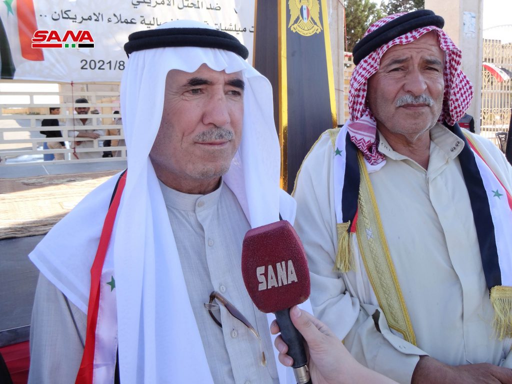 الشيخ وليد موسى السعد الشمري أحد وجهاء قبيلة شمر أشار إلى أن ما تسمى “قسد” لا تمثل شيئاً لولا دعمها من قبل العدو الأمريكي وهو ما أكده الشيخ أحمد عبده الحجي من قبيلة البكارة من السفيرة لافتاً إلى أن جميع أشكال الاحتلال إلى زوال قريباً بهمة أبناء سورية وأبطال جيشها الباسل.