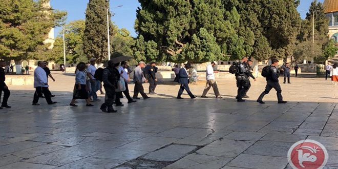 وذكرت وكالة وفا أن 189 مستوطنا اقتحموا الأقصى من جهة باب المغاربة ونفذوا جولات استفزازية في باحاته بحراسة مشددة من قوات الاحتلال.