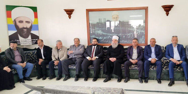 زار محافظ السويداء الدكتور مصطفى البكور، ووفد مرافق يضم مديري الدوائر الرسمية ورؤساء الوحدات الإدارية اليوم مشايخ عقل طائفة المسلمين الموحدين للتهنئة بعيد الفطر.