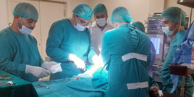 تمكن فريق طبي في مشفى المخرم الوطني بريف حمص من استئصال كيسة درقية لسانية لطفلة تبلغ من العمر 12 عاماً، في عمل جراحي نوعي لحالة نادرة تجرى لأول مرة في المشفى.