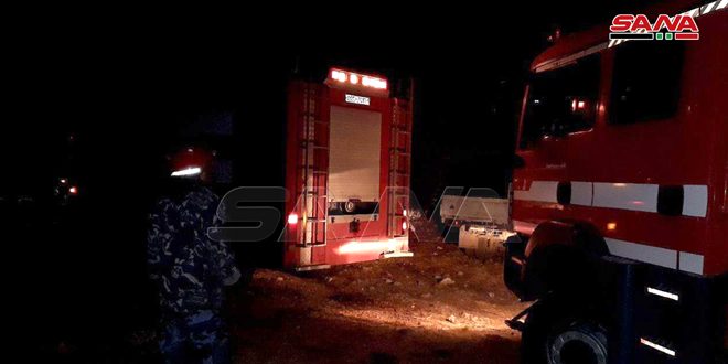 عناصر إطفاء طرطوس يخمدون حريقاً نشب في قرية بيلة في منطقة دوير الشيخ سعد