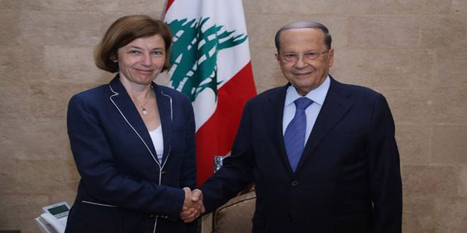 وشدد عون خلال لقائه اليوم وزيرة القوات المسلحة الفرنسية فلورانس بارلي على تمسك لبنان بعودة المهجرين السوريين إلى ديارهم موضحا أن القسم الأكبر من سورية بات مستقرا.