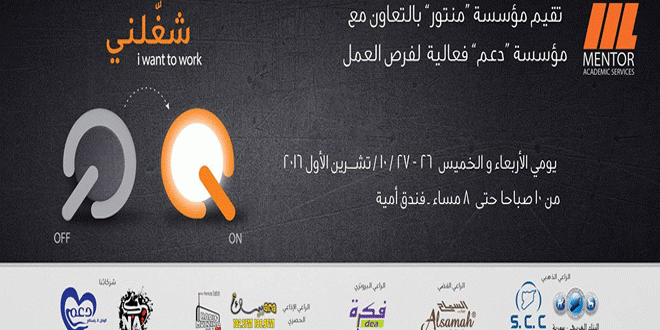 بهدف مساعدة الطلاب والخريجين وذوي الخبرة بالتعرف على واقع سوق العمل تقيم مؤسسة منتور للاستشارات والخدمات الأكاديمية “غداً” وبالتعاون مع مؤسسة “دعم” فعالية “شغلني” لفرص العمل في فندق أمية والتي تنطلق غداً الأربعاء.