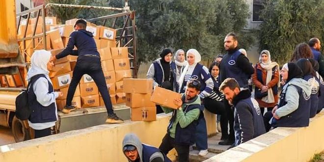 أكثر من مئة شاب وشابة من الطلبة الجامعيين بحمص شكلوا فريقاً تطوعياً بعد حدوث الزلزال الذي ضرب سورية في السادس من شباط الماضي أطلقوا عليه اسم( فريق هبة التطوعي) بإشراف ودعم من غرفة تجارة حمص، هدفه إغاثة المتضررين في المحافظات المنكوبة، والوقوف الى جانبهم مطلقين مبادرتهم الأولى (لهفة غوث حمصية) التي تصب في هذا المجال.