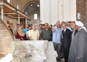 وخلال جولة تفقدية لسير أعمال تأهيل وترميم المباني الأثرية في مدينة حمص القديمة شملت كنيسة الأربعين ومدرسة الغسانية وسوق الناعورة وجامع النوري الكبير وجامع خالد ابن الوليد والسوق المسقوف أكد غلاونجي ضرورة الحفاظ على “الأرشيف التاريخي والتراثي” لمدينة حمص.